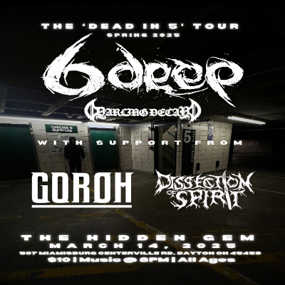 6deep is a Cleveland-based metalcore band delivering a powerful blend of crushing riffs, raw emotion, and relentless energy. Their latest EP, 'Dead in 5', was released on December 23, 2024, and is available on Spotify and Apple Music.